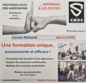 Il est nécessaire et urgent d’apporter des solutions et d’agir, j’ai créé une agence de formation, sous franchise du Centre National de Gestion des Conflits. J’interviens sur les régions Auvergne-Rhône-Alpes et Bourgogne-Franche-Comté. J’y dispense des formations en gestion des conflits verbaux et physiques auprès de toute structure travaillant au contact du public. L’agressivité de la population ayant tendance à augmenter malheureusement, nous sommes tous concernés et susceptibles d’en être un jour les victimes.